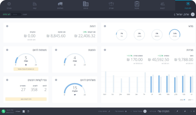 מערכת ניהול ובקרה המציגה מידע ופועלת בזמן אמת. הזמנות מאתרים, מלאי, משימות, משלוחים, גבייה - שליטה ובקרה מלאה בזמן אמת מכל מקום בעולם